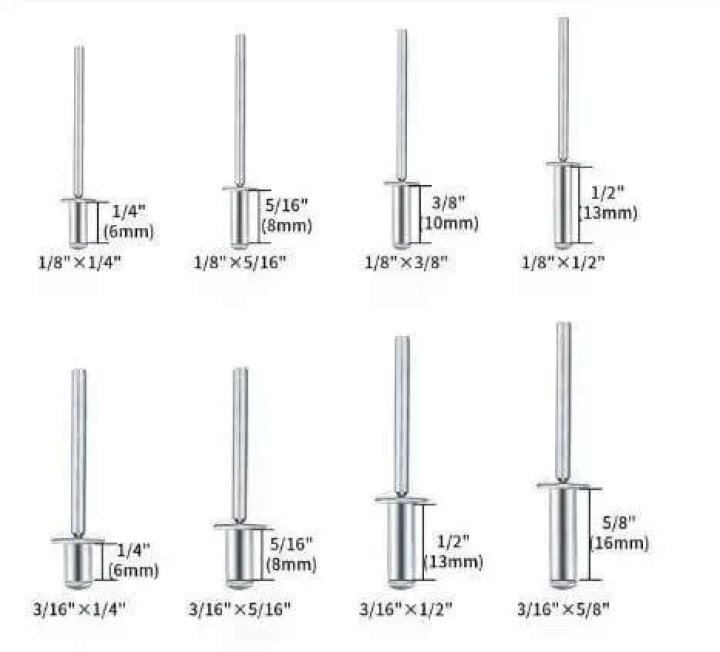 Generally, the actual diameter of the rivet is slightly smaller than that of the hole need to be drilled. Ideally, a rivet should be placed in a hole which is 4-6 thousandths of an inch larger in diameter.
